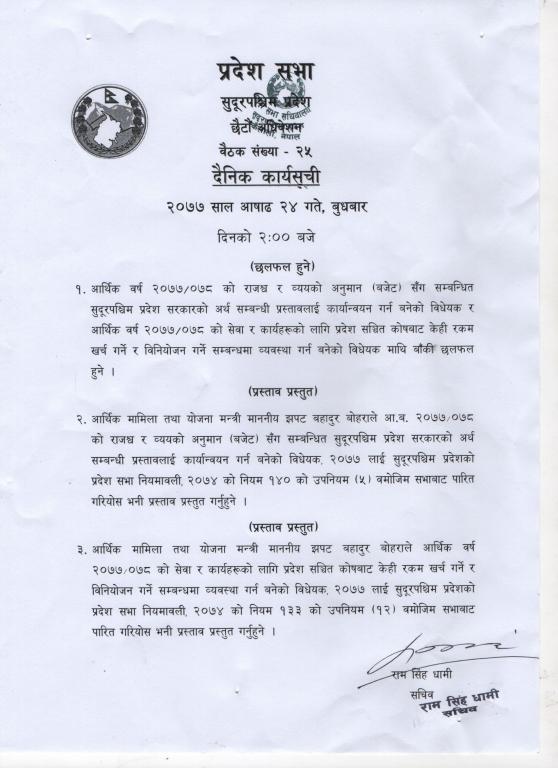 सुदूरपश्चिम प्रदेश, प्रदेश सभा सचिवालय.