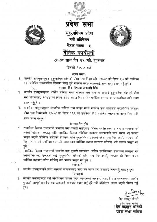 सुदूरपश्चिम प्रदेश, प्रदेश सभा सचिवालय.
