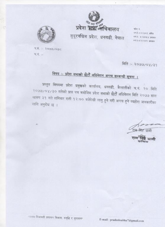 सुदूरपश्चिम प्रदेश, प्रदेश सभा सचिवालय.